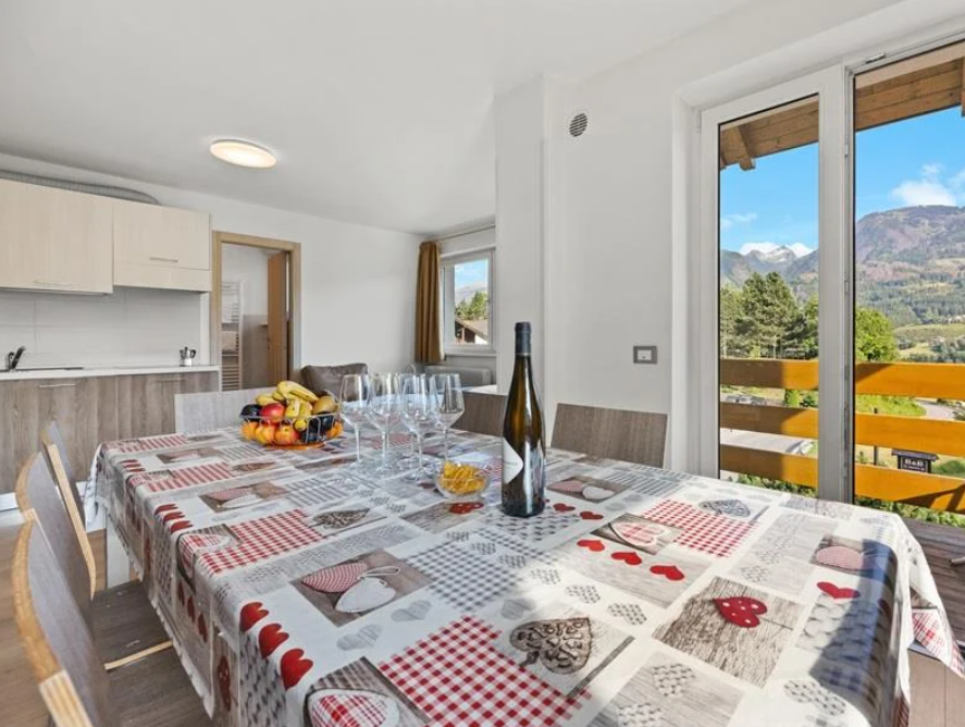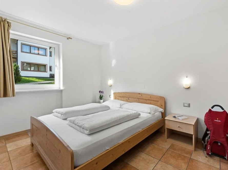 De lägenheter i Cavalese som vi erbjuder 2027 är för 4-7 personer på totalt 65 kvm. Några lägenheter har tre sovrum och ett badrum, andra har två sovrum och två badrum. I varje lägenhet finns balkong, kokvrå, dusch och toalett (två stycken i lägenheterna med två sovrum), matbord med stolar, bäddsoffa/soffa och wifi.