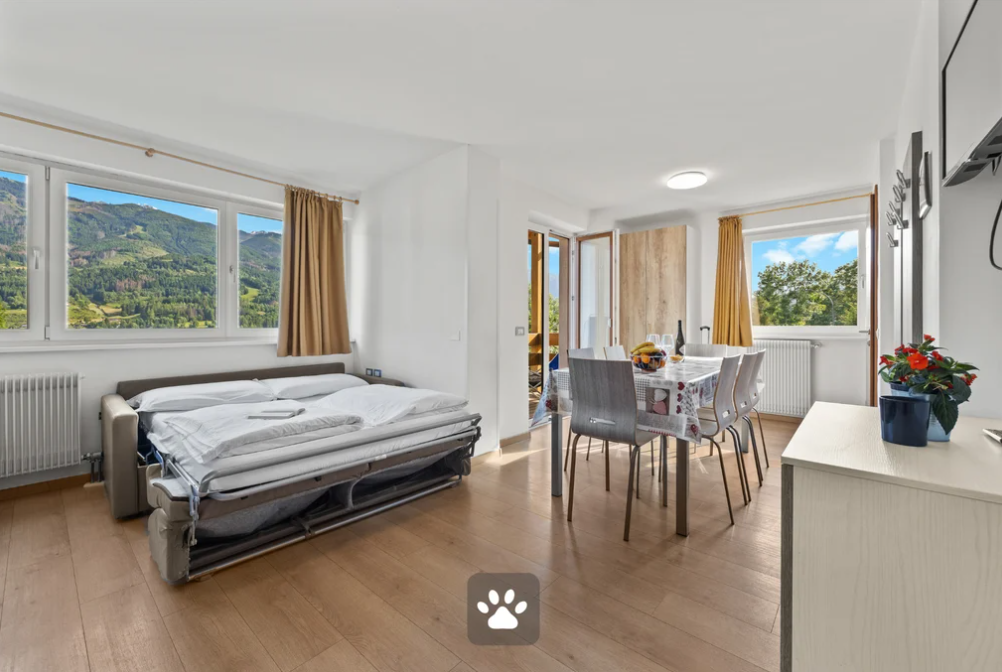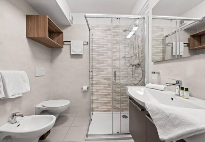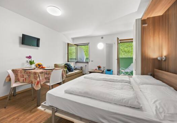 De lägenheter i Cavalese som vi erbjuder 2027 är för 4-7 personer på totalt 65 kvm. Några lägenheter har tre sovrum och ett badrum, andra har två sovrum och två badrum. I varje lägenhet finns balkong, kokvrå, dusch och toalett (två stycken i lägenheterna med två sovrum), matbord med stolar, bäddsoffa/soffa och wifi.